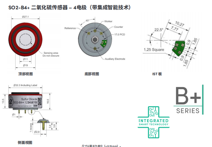 英國alphasense 二氧化硫傳感器(SO2傳感器)SO2-B4 SO2-B4+ IST板數(shù)據(jù):