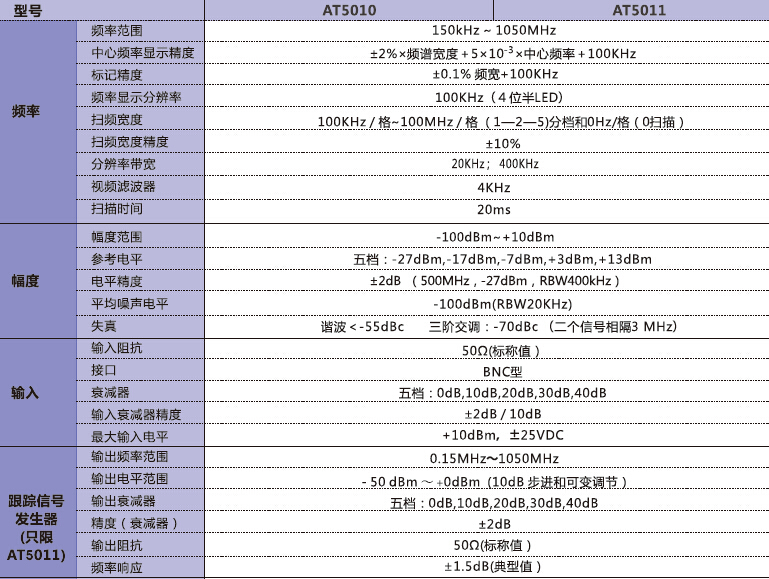 四、經(jīng)濟(jì)型頻譜分析儀AT5000/AT6000系列技術(shù)參數(shù)