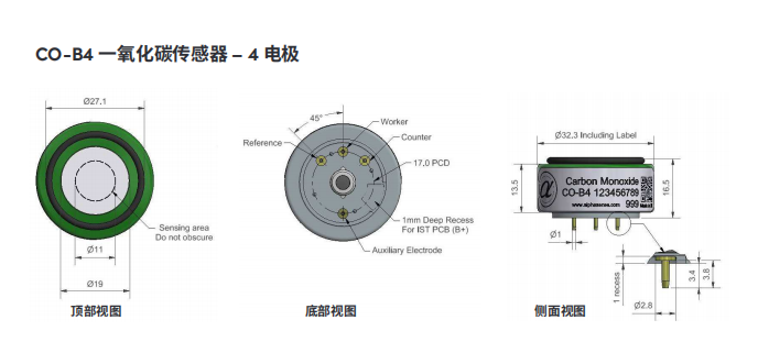 一、英國(guó)alphasense 高分辨率一氧化碳傳感器(CO傳感器)CO-B4 CO-B4+描述: