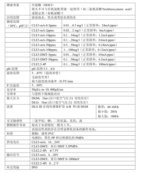 四、CLE 余氯傳感器技術(shù)參數(shù):