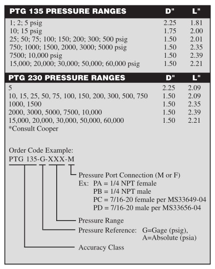 Cooper Instruments 精密壓力傳感器PTG135描述: