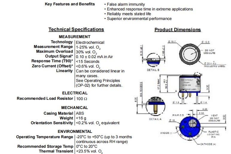 產(chǎn)品介紹: 4OXV是英國CITY公司推出的一款高性能電化學(xué)式氧氣傳感器:主要用于測量環(huán)境中氧氣氣體濃度,根據(jù)測量范圍的不同以及工作壽命的長短,主要特點(diǎn)和優(yōu)勢,消除了誤報(bào),可靠性確保達(dá)到指定壽命,優(yōu)越的環(huán)境性能,提高了在極端應(yīng)用中的反應(yīng)速度。氧氣傳感器4OXV氧氣傳感器有多個(gè)型號(hào),例如:氧傳感器7OXV, 70X, AO2T, AO2, AO3,KE25, KE50, 5FO, 2FO, T70XV, 40X, I103等