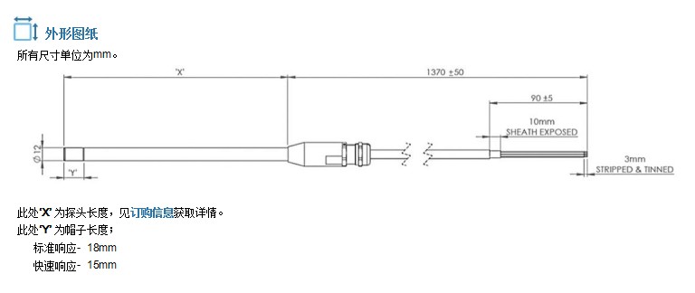 英國SST 氧化鋯傳感器 O2傳感器 屏蔽探頭系列 長殼體 O2S-FR-T6-Blank-SCRN 尺寸: