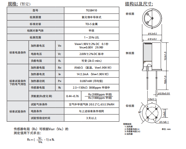 TGS8410是日本Figaro新研發(fā)的半導(dǎo)體式甲烷氣體傳感器。
