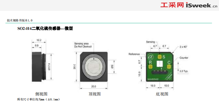 英國Alphasense SO2 二氧化硫傳感器 電化學(xué) 微型 SO2-H4 參數(shù):