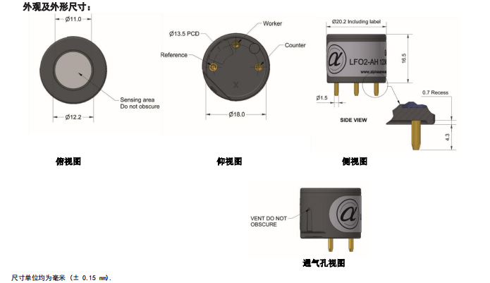 英國Alphasense O2 長壽命無鉛氧氣傳感器 LFO2-AH 描述: