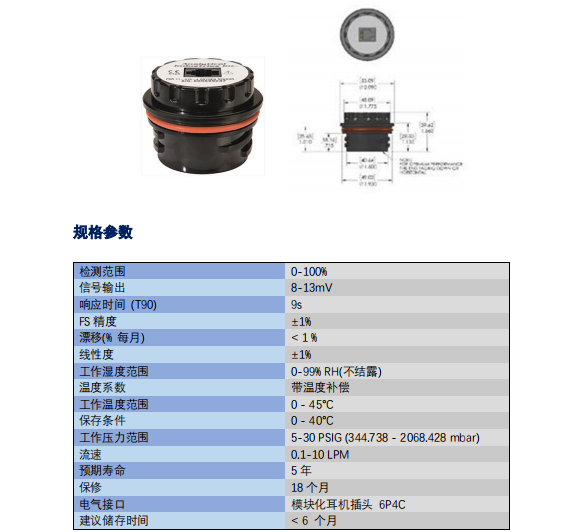 美國(guó)AII O2 氧氣傳感器 PSR-11-915-4 參數(shù):