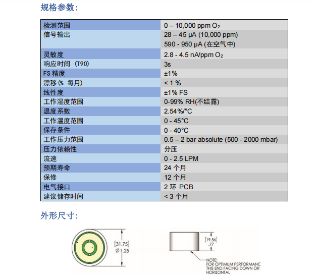 1.在 25°C,<1000 ppm 和 1 bar 的環(huán)境中。預期壽命與氧氣濃度、溫度和壓力的變化成反比。