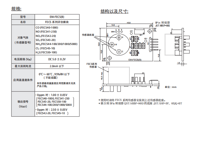 日本figaro 用于評估 FECS 系列的模塊?EM-FECS(B) 參數(shù):