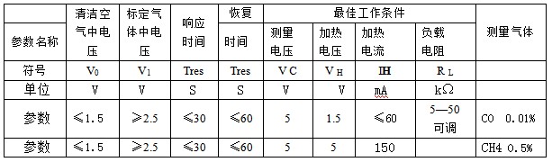 三、一氧化碳可燃?xì)怏w傳感器MQ-K9規(guī)格型號: