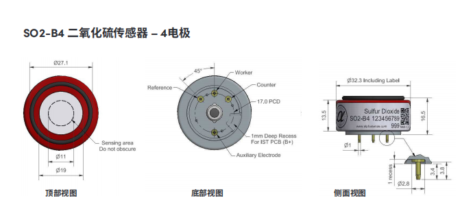 一、英國alphasense 二氧化硫傳感器(SO2傳感器)SO2-B4 SO2-B4+描述: