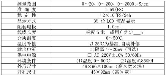 工業(yè)在線電導(dǎo)率儀DDG-230主要技術(shù)指標(biāo)