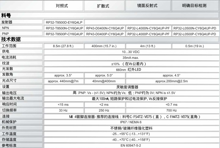 HTM Sensors 光電傳感器 - RP32系列