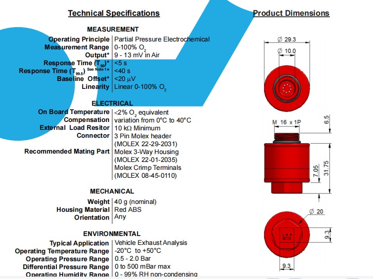 AO2 PTB-18.10使用于各類與氧氣測試相關(guān)的儀器中,如:機(jī)動車尾氣檢測儀器,廢氣環(huán)保檢測儀器,氧指數(shù)測試儀器。