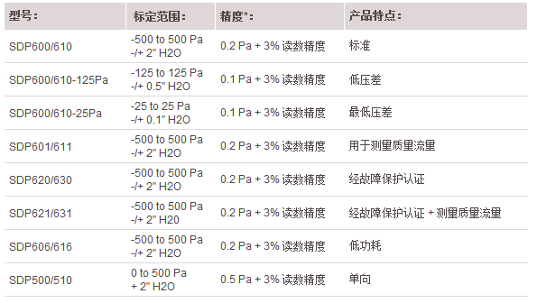 三、SDP600系列差壓傳感器型號的特點顯示如下: