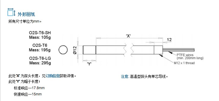 英國SST 氧化鋯傳感器 O2傳感器 探頭系列 長殼體 O2S-系列 參數(shù):