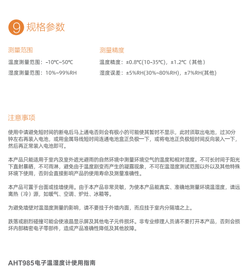 AHT985是一款用于室內(nèi)的溫濕度計,裝有精密的物理感應部件,能準確測量附近的溫濕度,提醒我們調(diào)整合適的環(huán)境溫濕度,保護財產(chǎn)安全,保障身體健康等