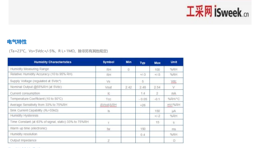 4、 5Vdc 電源下 0 至 100%RH 的典型 1 至 3.6 V直流輸出