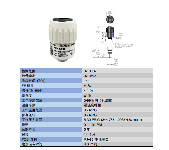 美國AII O2 氧氣傳感器 PSR-11-77-CT4 參數(shù):