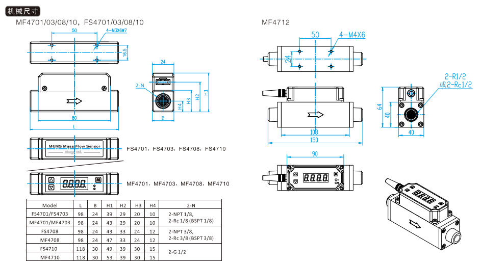MF/FS4700系列氣體質(zhì)量流量計(jì)是均采用本公司自主研發(fā)的微機(jī)電系統(tǒng)(MEMS)流量傳感芯片來(lái)制作,適用于各類清潔、干燥氣體。