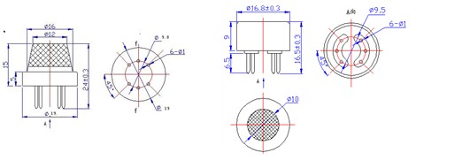 四、一氧化碳可燃?xì)怏w傳感器MQ-K9外形結(jié)構(gòu):